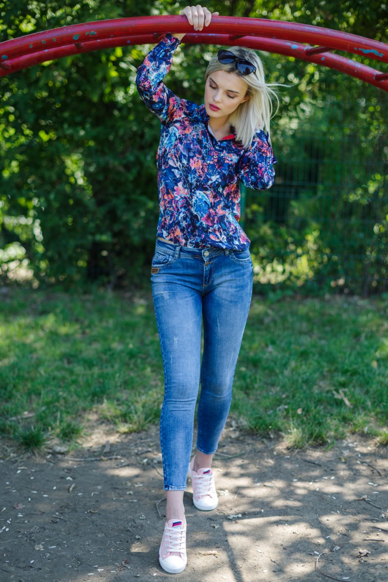 Jeans Ruxia, 149.90 lei, din denim stretch de inalta calitate, accesorizat cu embleme din piele personalizate. Jeansul are o croiala skinny, talie medie, 5 buzunare functionale, efect uzat in partea frontala, inchidere cu fermoar si nasturi in fata. Aceasta pereche de jeans modelatoare este ideala pentru silueta in forma de A.