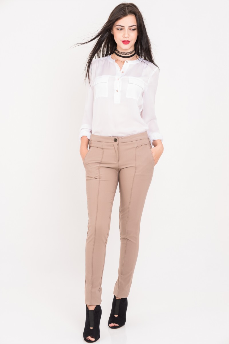 Aflați în campanie de reducere la pretul de 49,90 lei, pantalonii „hermosa” din tercot elastic, culoare deschisa, merg purtati atat la tinute office cat si casual sau de seara. Au un design special care avantajeaza o silueta atletica sau tip clepsidra.