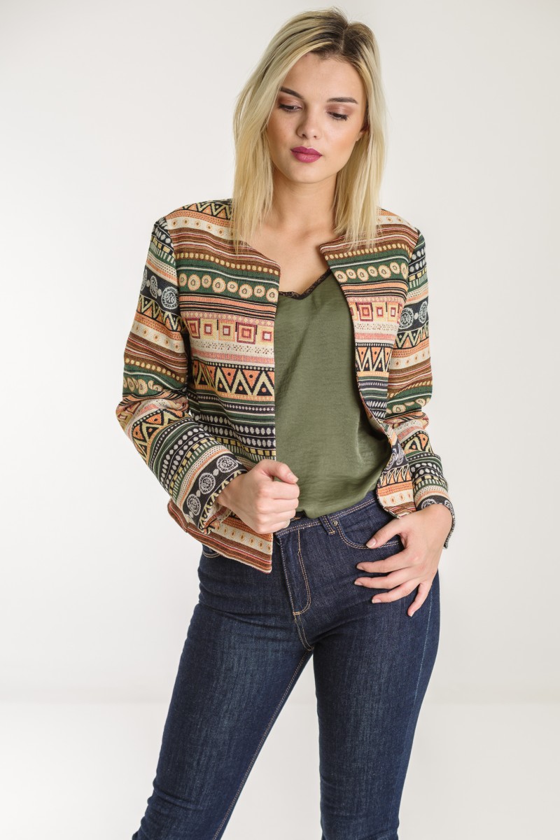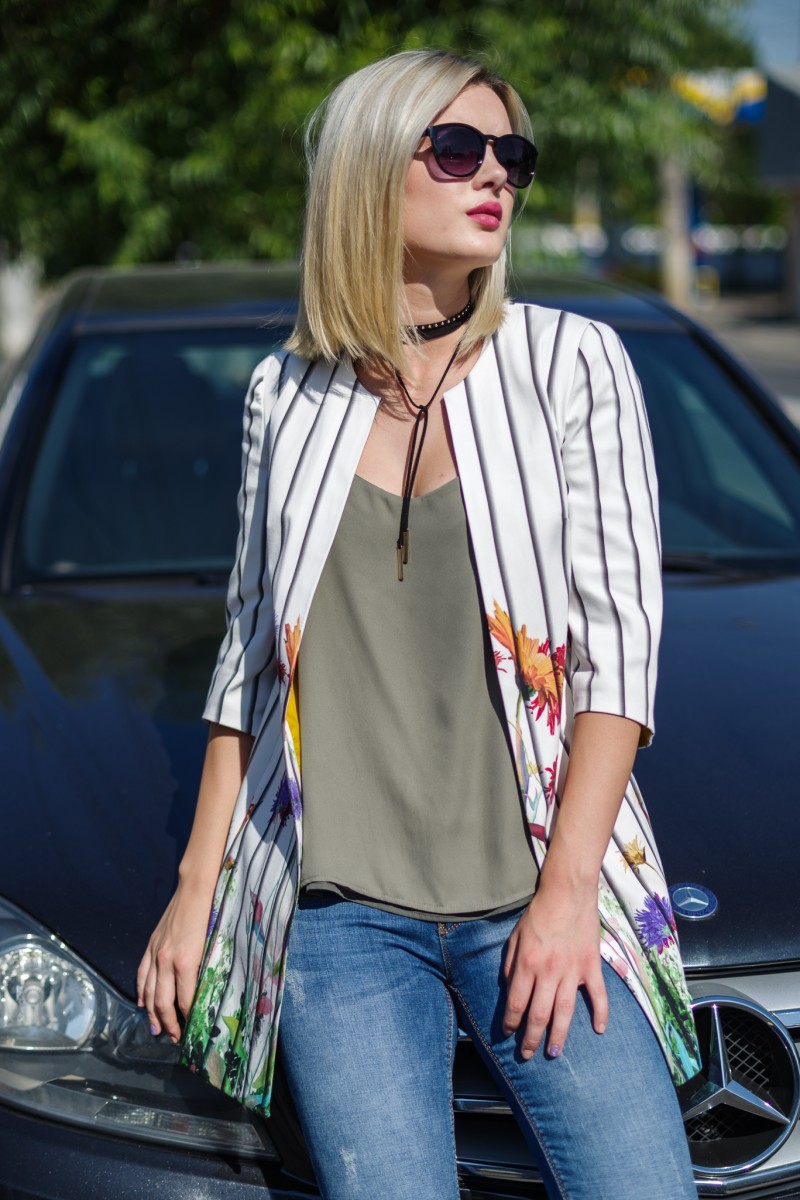 In cazul in care esti o romantica incurabila, atunci alege o jacheta alba cu imprimeuri florale, ideala pentru a fi asortata cu orice tinuta, in functie de lungime si croiala. Alege o jacheta cu croiala clasica la care poti asorta o rochie eleganta sau o jacheta office ce iti poate pune in evidenta silueta si vestimentatia. Jacheta Geny din tercot imprimat digital exclusiv, dublata cu captuseala din panza de bumbac, are o croiala lejera si maneca trei sferturi evazata, oferind un plus de eleganta oricarei tinute.